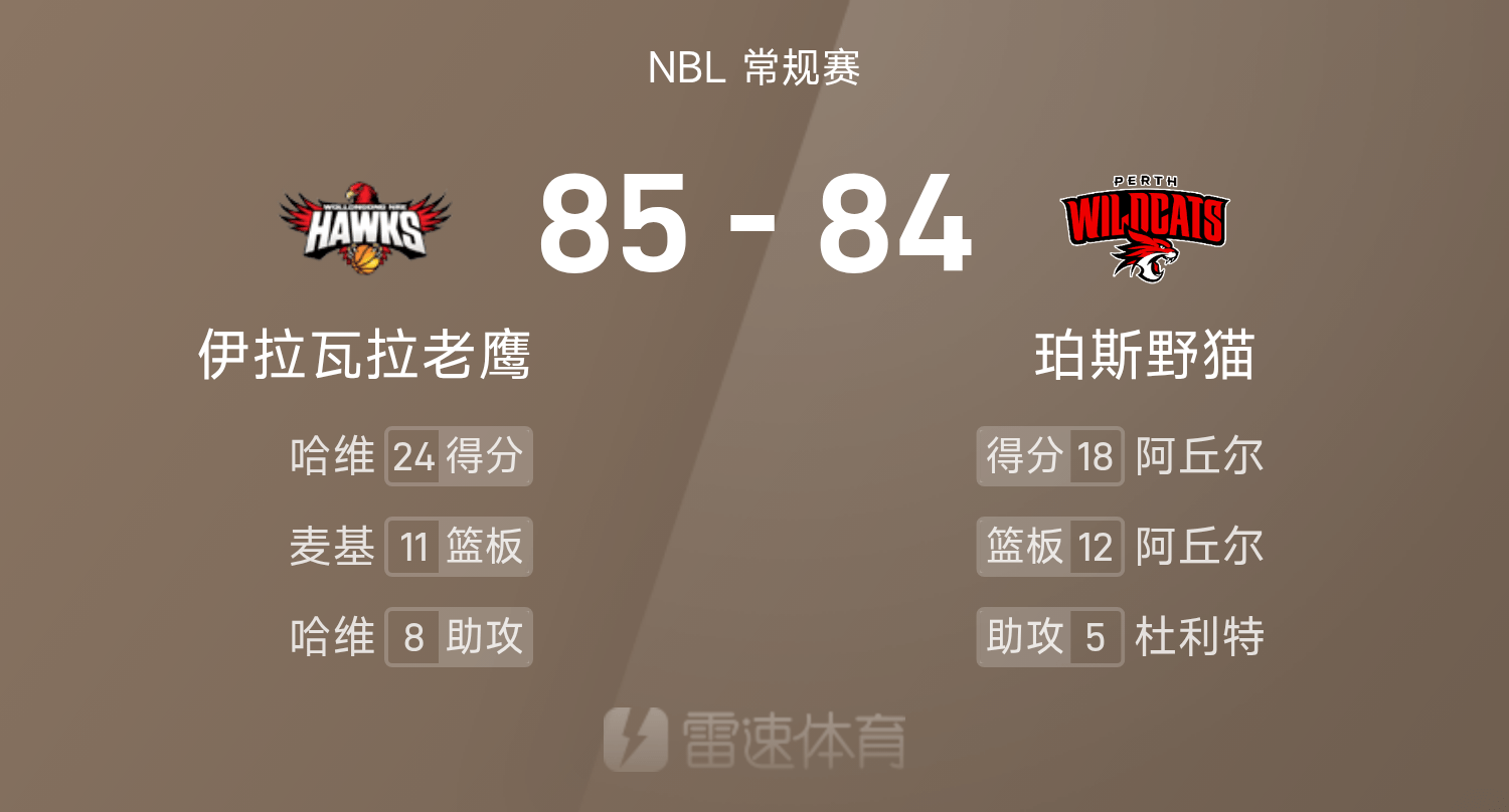 6686 Sports October 25 News In the 25/26 NBL regular season, the Perth Wildcats faced the Illawarra Eagles. At the end of the game, the Perth Wildcats lost to the Illawarra Eagles 84-85. Harvey scored a game-high 24 points, 5 rebounds and 8 assists, leading the Illawarra Hawks to victory.