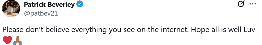 In response, Beverly updated the news and wrote: "Please don't believe everything you see on the Internet. I hope everything is fine and I love you."