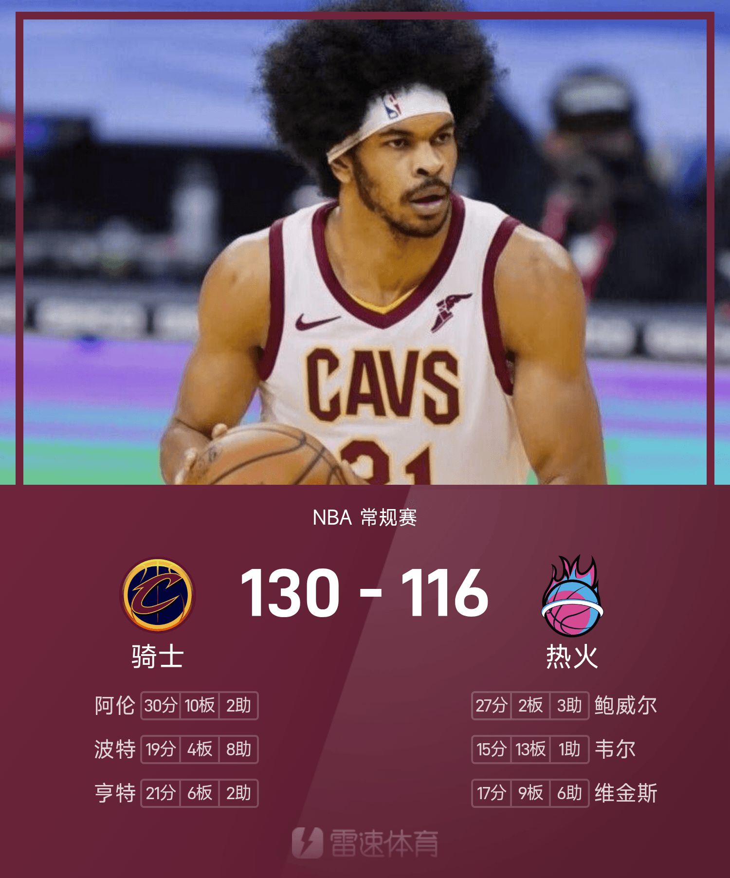 6686 Sports November 13 News In the 25/26 NBA regular season, the Heat played against the Cavaliers. At the end of the game, the Heat lost to the Cavaliers 116-130. Allen scored a game-high 30 points, 10 rebounds and 2 assists, leading the Cavaliers to victory.