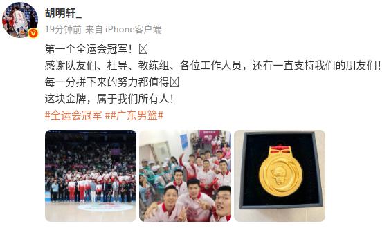 6686 Sports News on November 13 In the National Games Men’s Basketball Finals, the Guangdong team defeated the Zhejiang team and won the championship. After the game, Hu Mingxuan posted on social media to share his thoughts.
