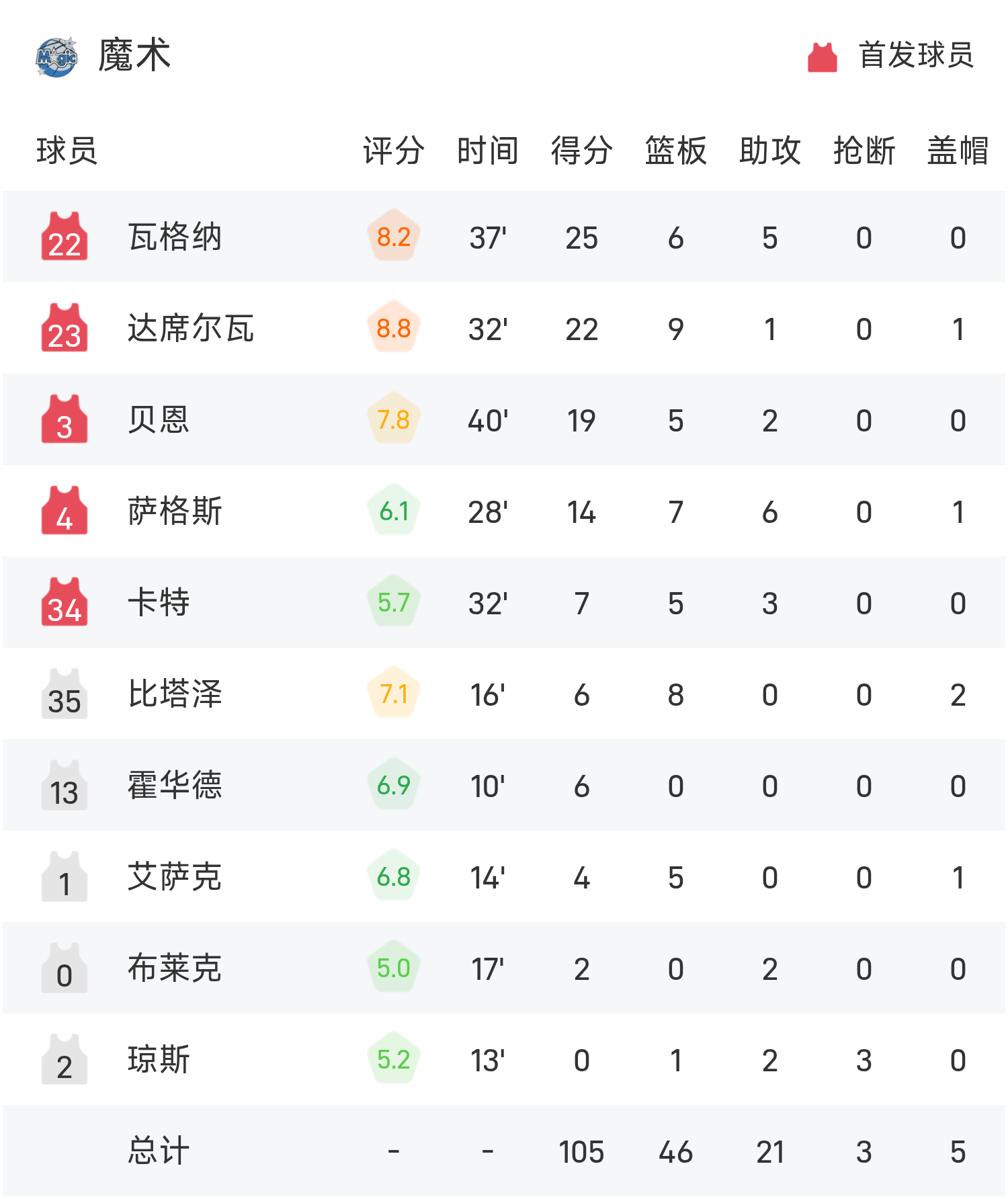 Wagner scored a game-high 25 points, 6 rebounds and 5 assists, leading the Magic to victory.