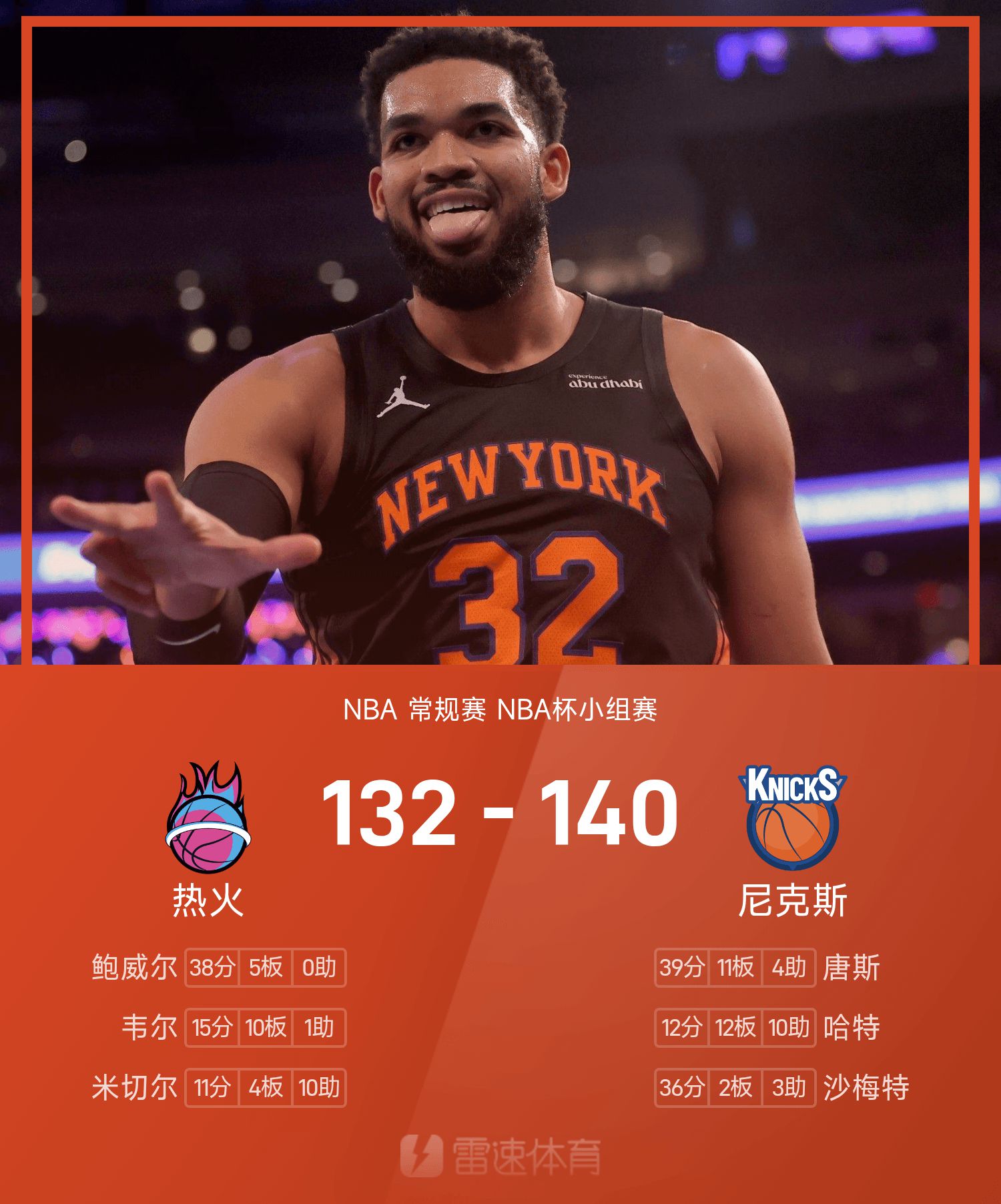 Knicks star Towns scored 31 points at halftime and scored 39 points in the game with 11 rebounds, 4 assists and 1 interception to lead the team to victory.