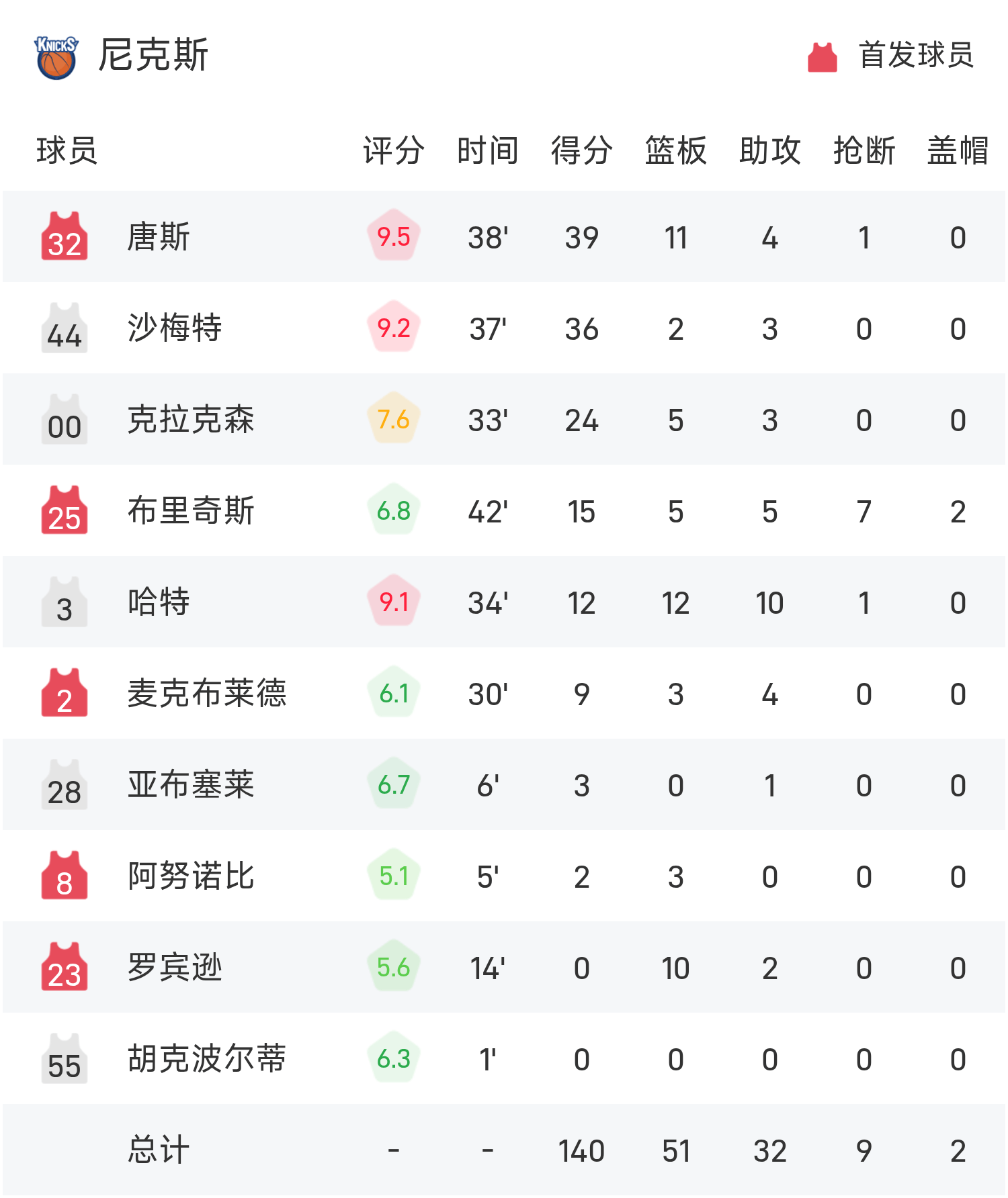 6686 Sports November 15 News In the 25/26 NBA regular season NBA Cup group match, the Knicks faced the Heat. At the end of the game, the Knicks defeated the Heat 140-132. Towns scored a game-high 39 points, 11 rebounds and 4 assists, leading the Knicks to victory.