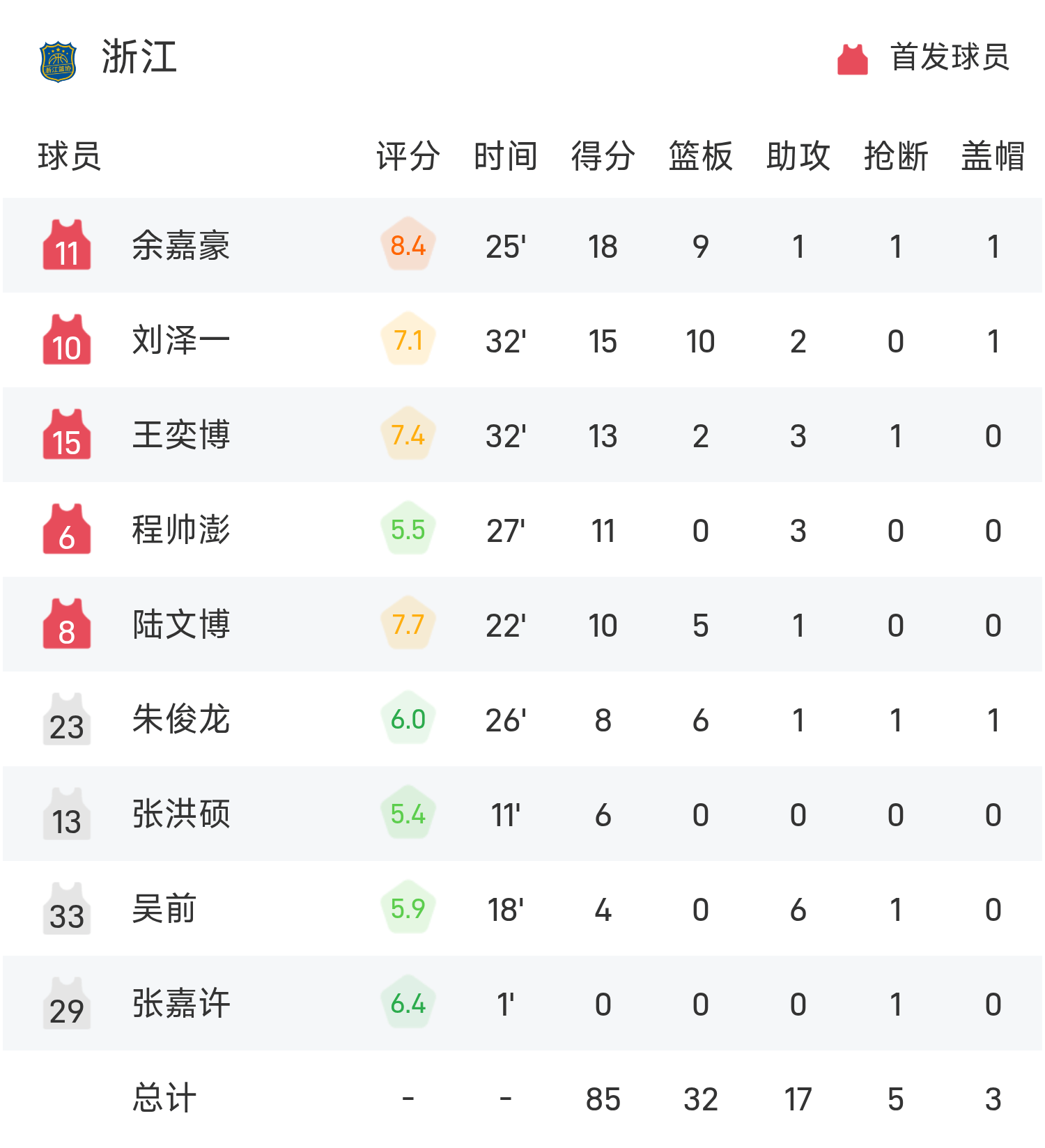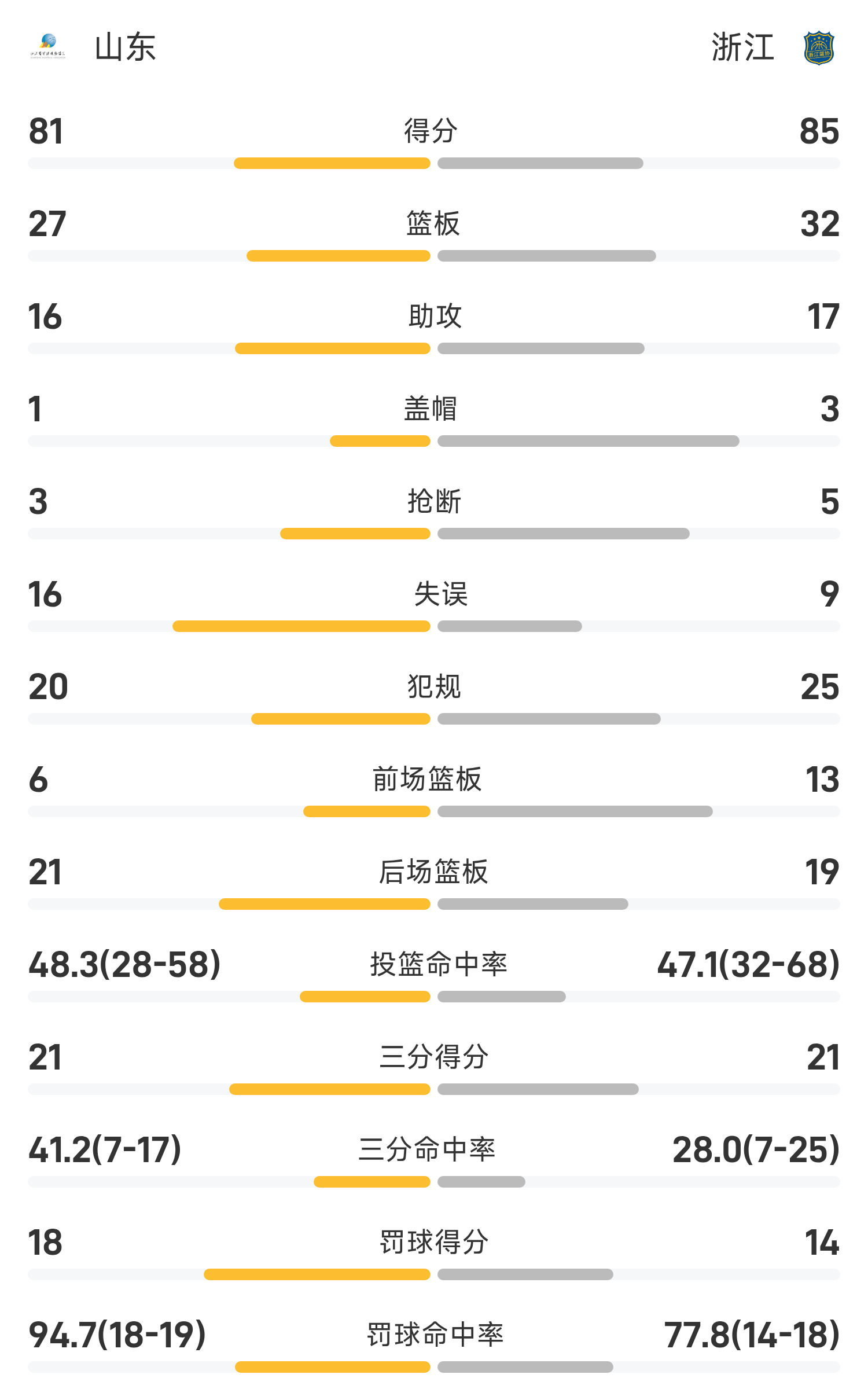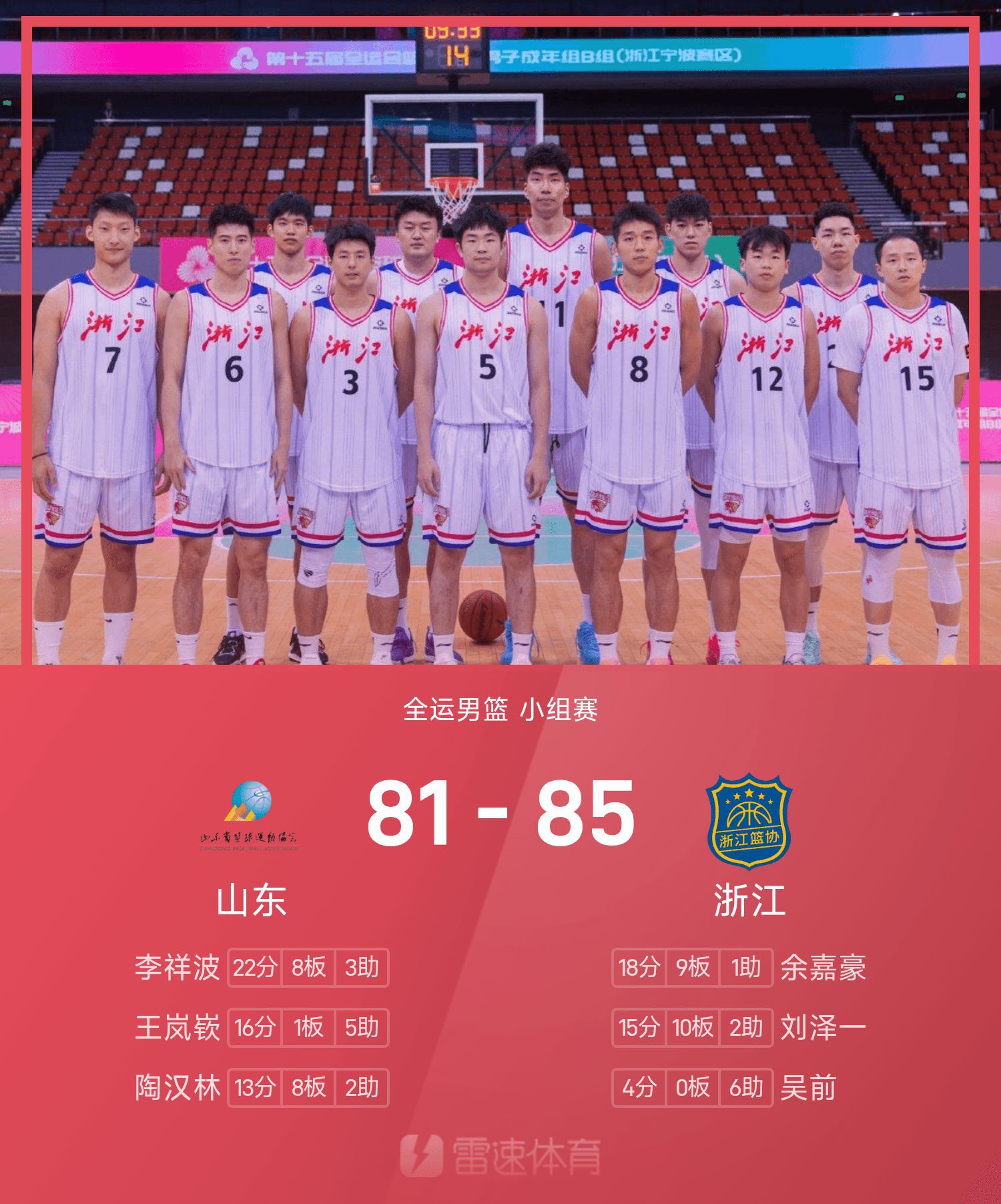 National Games Men’s Basketball Game Report: Yu Jiahao had 18 points and 9 rebounds, Zhejiang narrowly beat Shandong 85-81