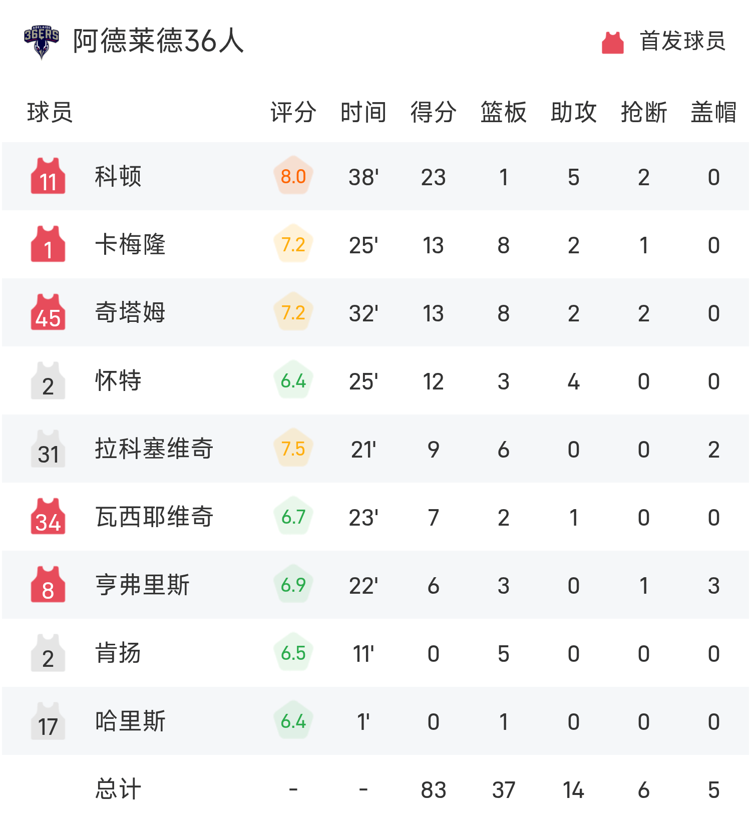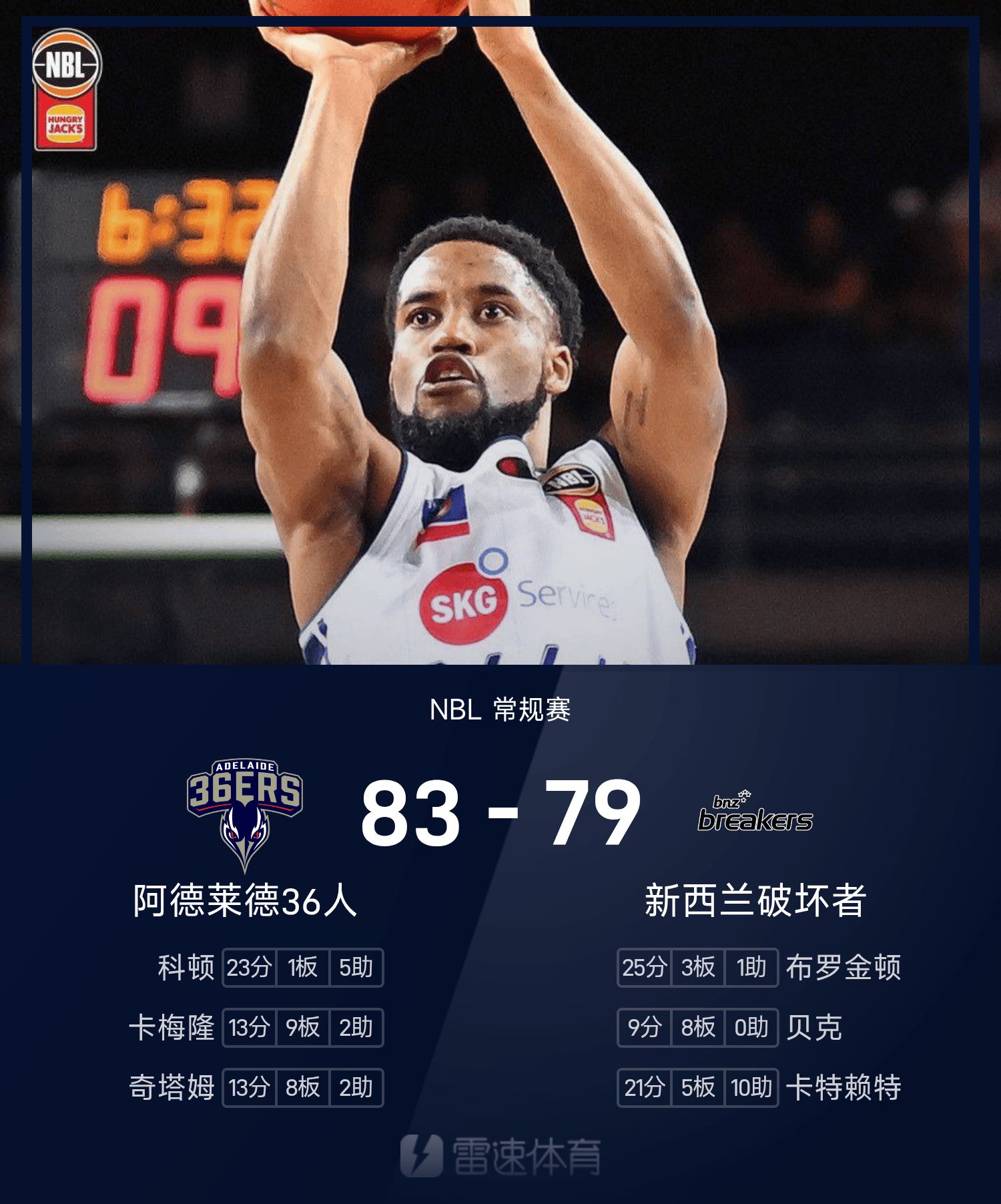 6686 Sports November 06 News In the 25/26 NBL regular season, the New Zealand Destroyers faced the Adelaide 36ers. At the end of the match, the New Zealand Destroyers lost to the Adelaide 36ers 79-83. Cotton scored 23 points, 1 rebound and 5 assists to lead the team to victory, while Brockington scored a game-high 25 points, 3 rebounds and 1 assist.