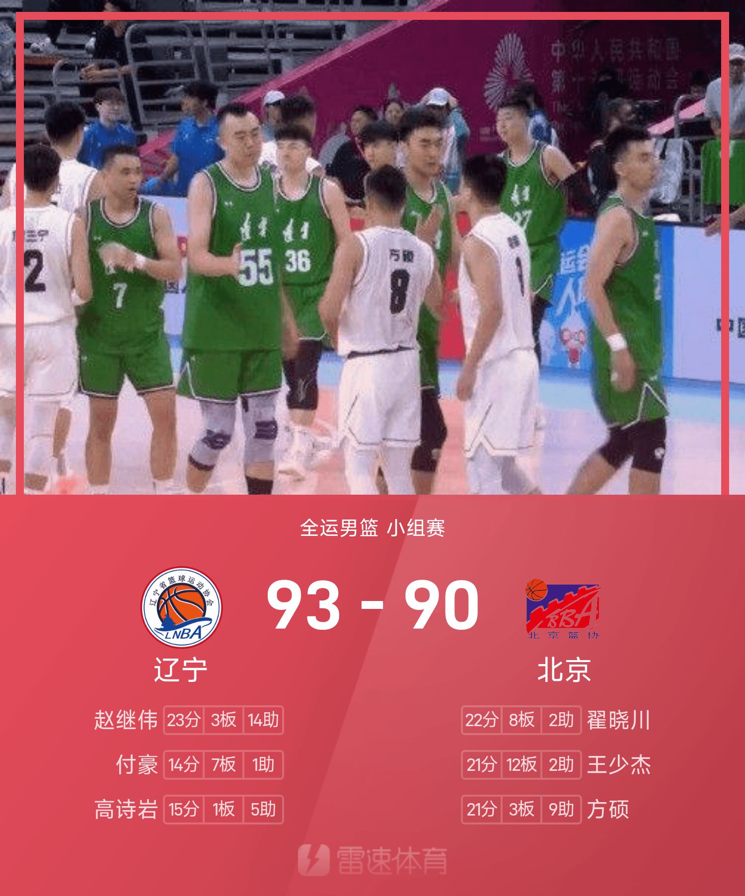 National Games men's basketball game report: Zhao Jiwei 23 points and 14 assists, Liaoning narrowly beat Beijing 93-90
