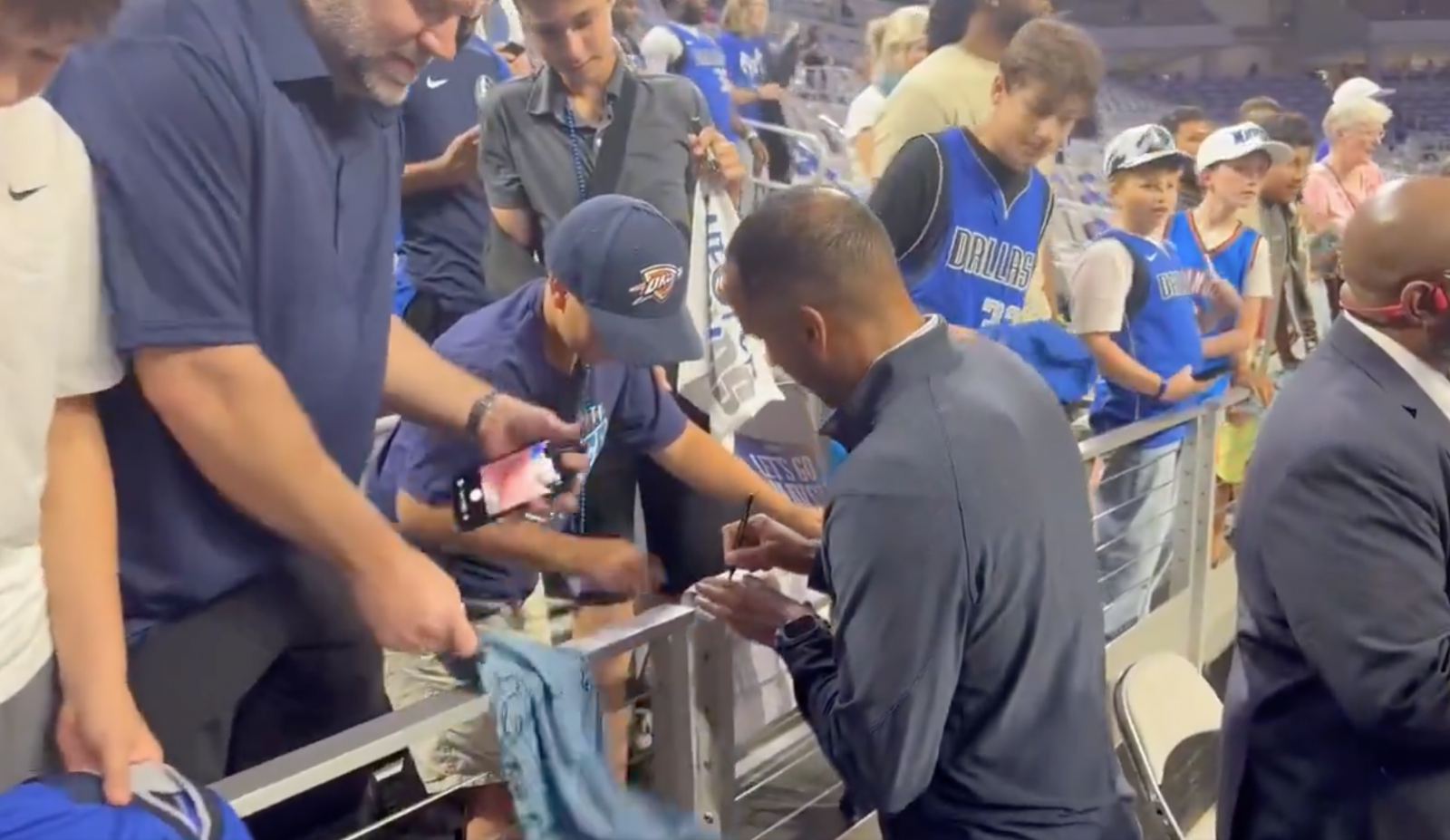 Harrison signed autographs and took photos for Mavericks fans, deliberately skipping fans wearing Doncic uniforms