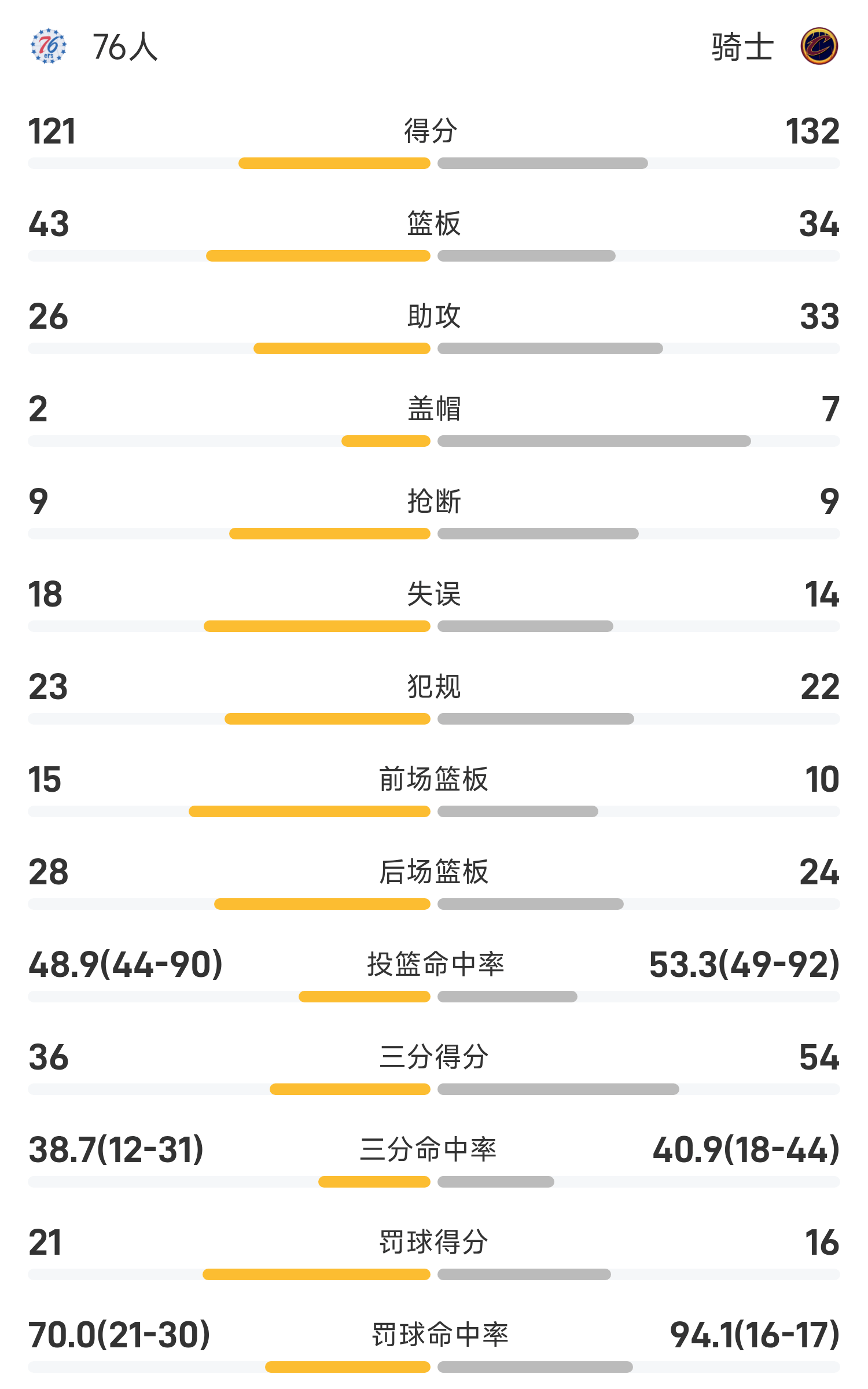 After the two sides battled, the Cavaliers defeated the 76ers 132-121.