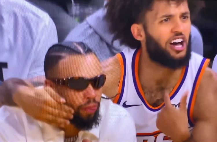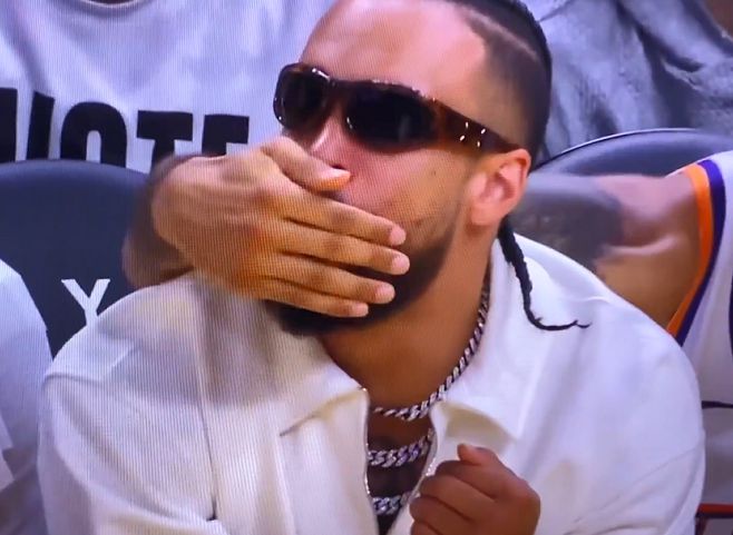 Today, Suns player Dillon Brooks continued to be absent, but Dillon, who was sitting on the bench, kept talking trash in the final quarter. What was interesting was the action of Suns teammate Isaiah Livers. Livers first hugged Dillon. After discovering that Dillon continued to spit out sweet things, Livers covered Dillon's mouth and told the referee that he was the one talking.