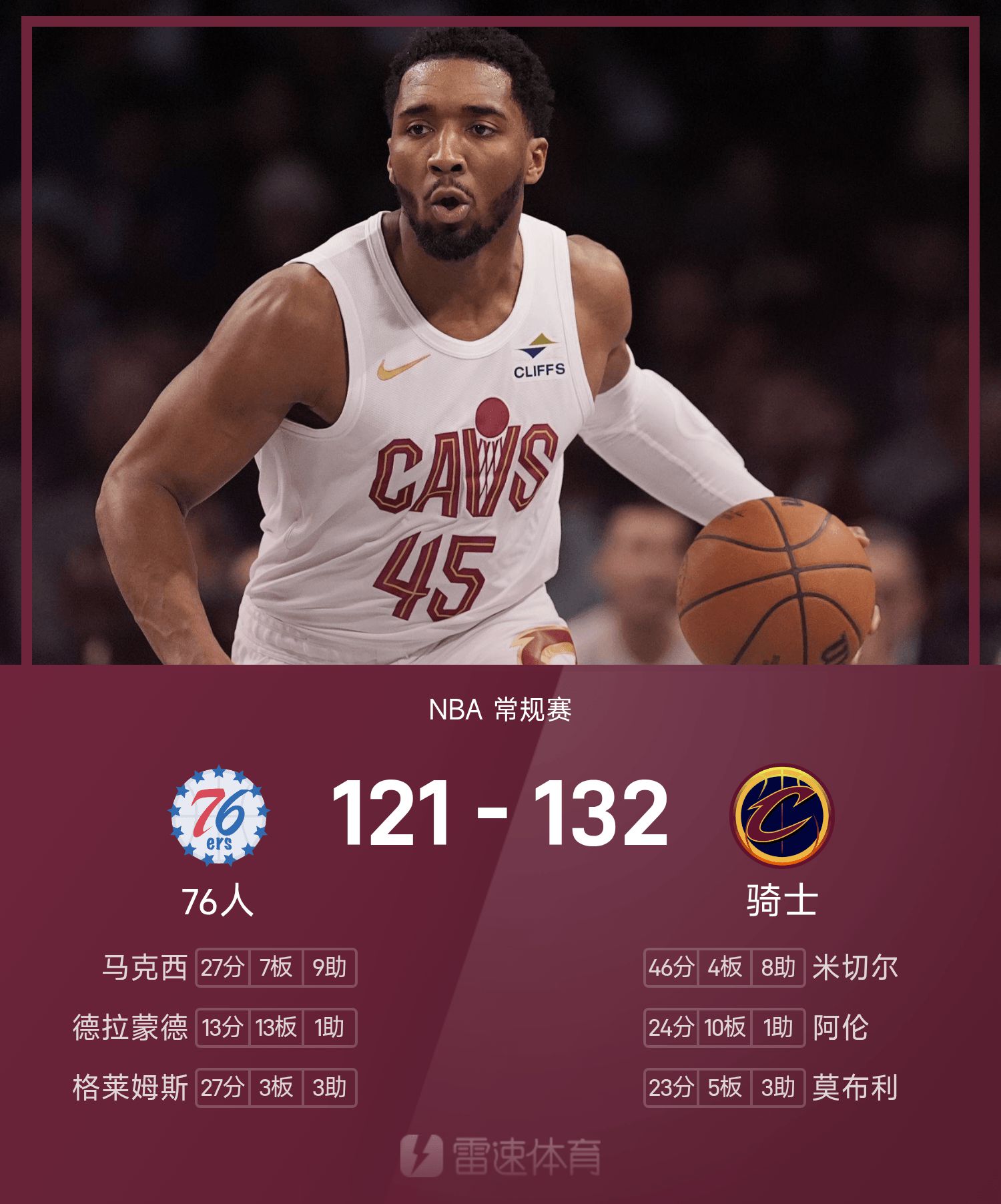 76ers 121-132 Cavaliers