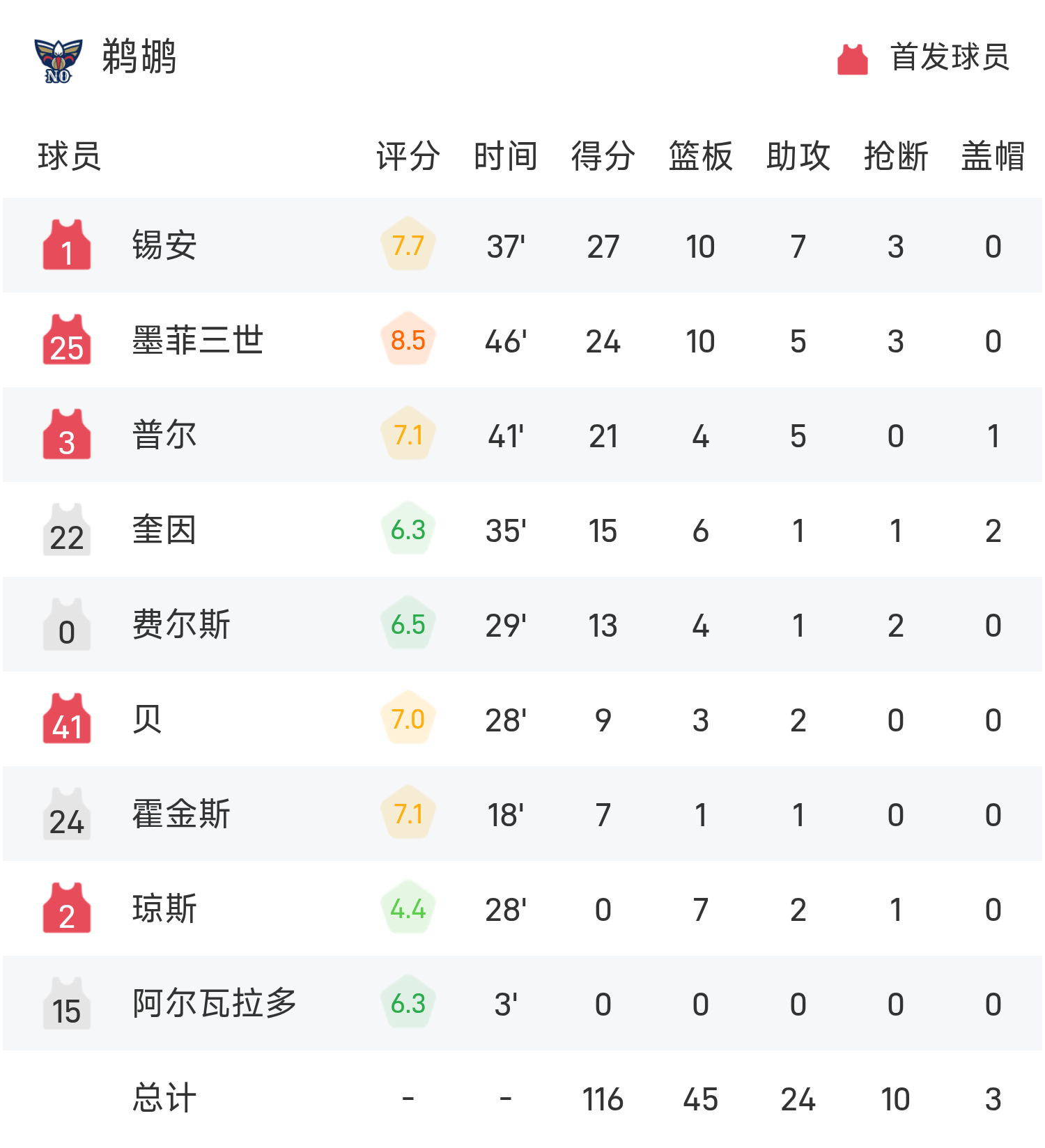 6686 Sports October 25 News In the 25/26 NBA regular season, the Pelicans faced the Spurs. At the end of the game, the Pelicans lost to the Spurs 116-120. Bunyama scored a game-high 29 points, 11 rebounds and 2 assists, leading the Spurs to victory.