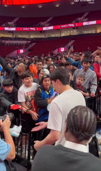 The NBA’s official social media posted a video, showing many fans waiting for Yang Hansen in the tunnel before the game.