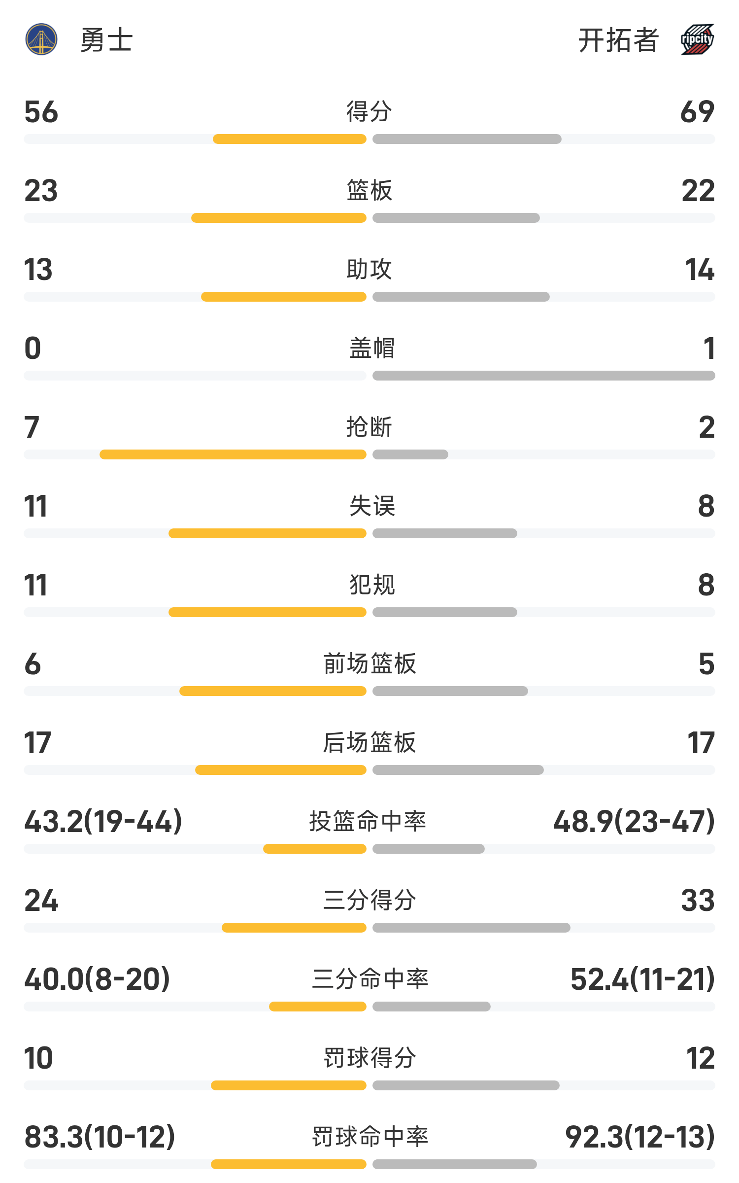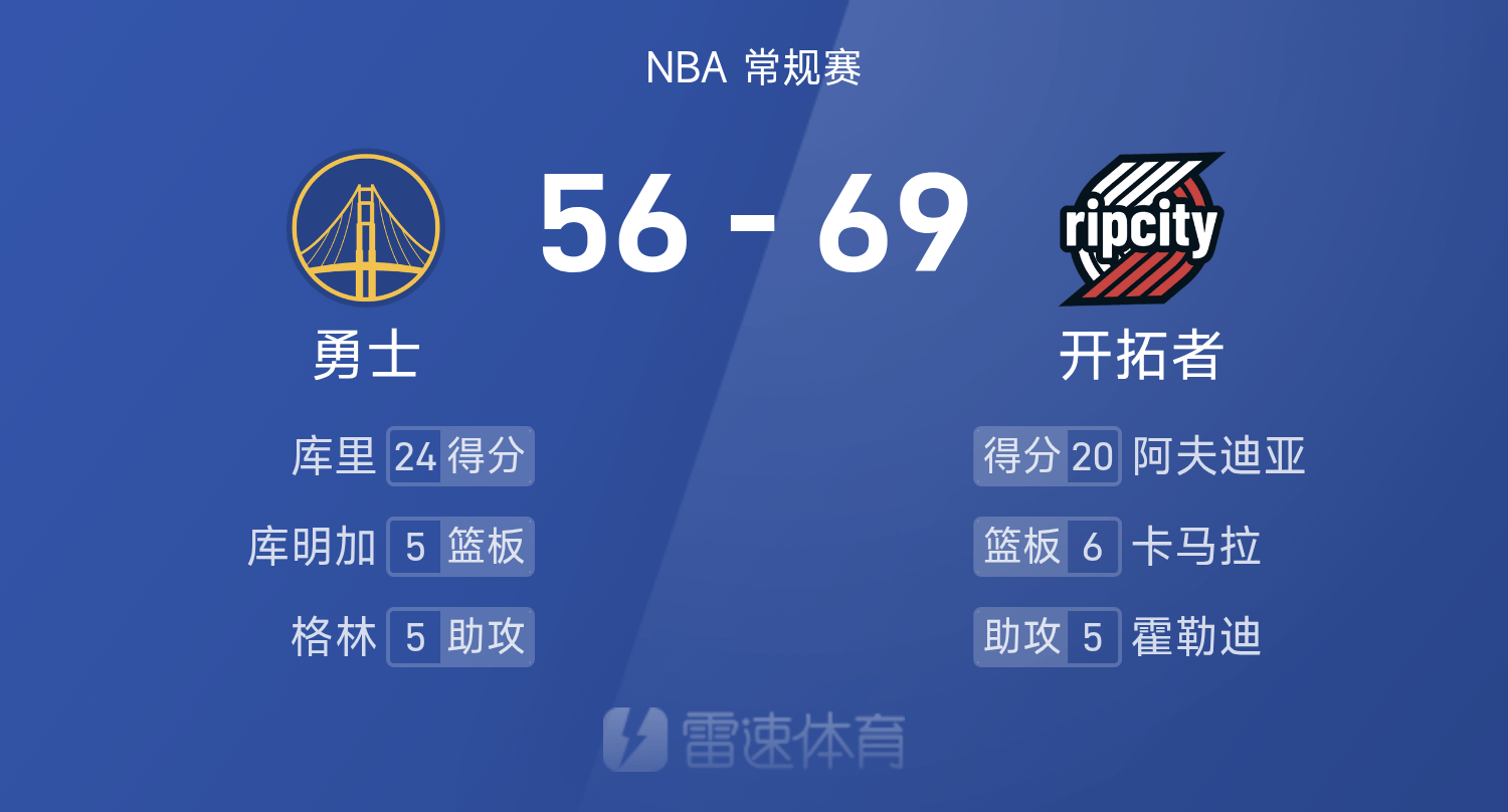NBA halftime: Yang Hansen made 0 of 1 shots, had 1 rebound and 1 error, Curry scored 24 points with 5 three-pointers, Trail Blazers 69-56 Warriors