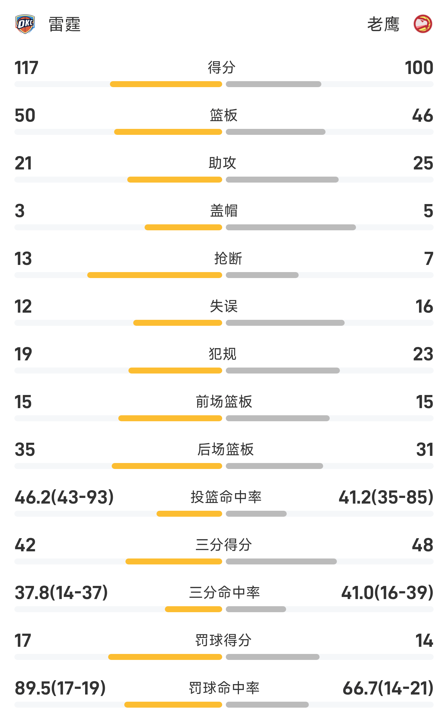 At the end of the game, the Eagles lost to the Thunder 99-117.