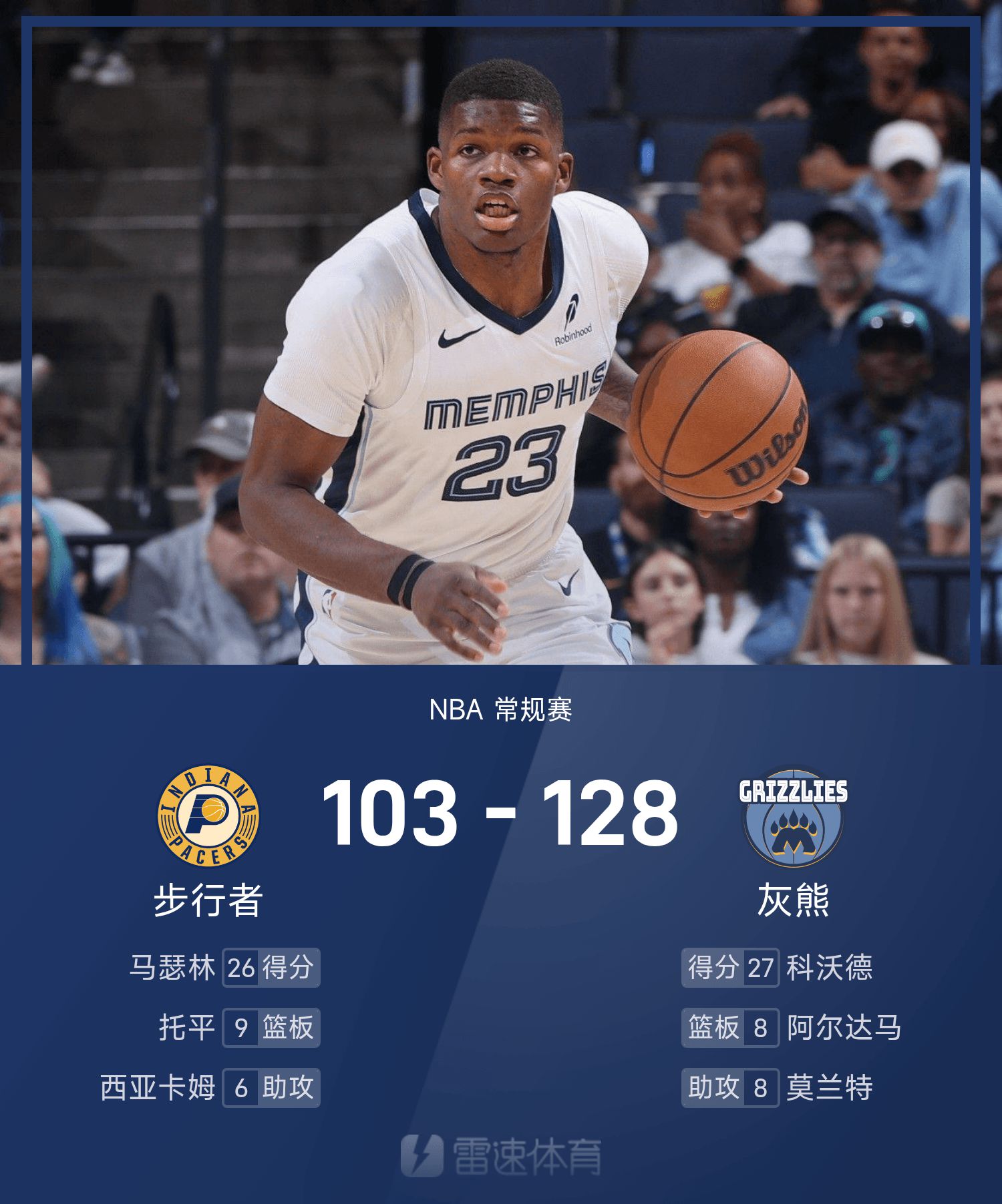 The Grizzlies beat the Pacers 128-103