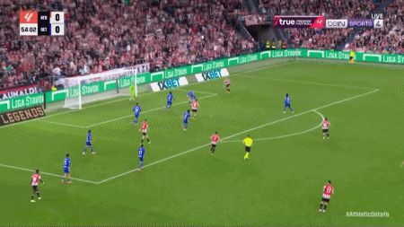 54’ Guruzeta headed the ball towards the goal in the three-second zone, but the ball was blocked by the goalkeeper