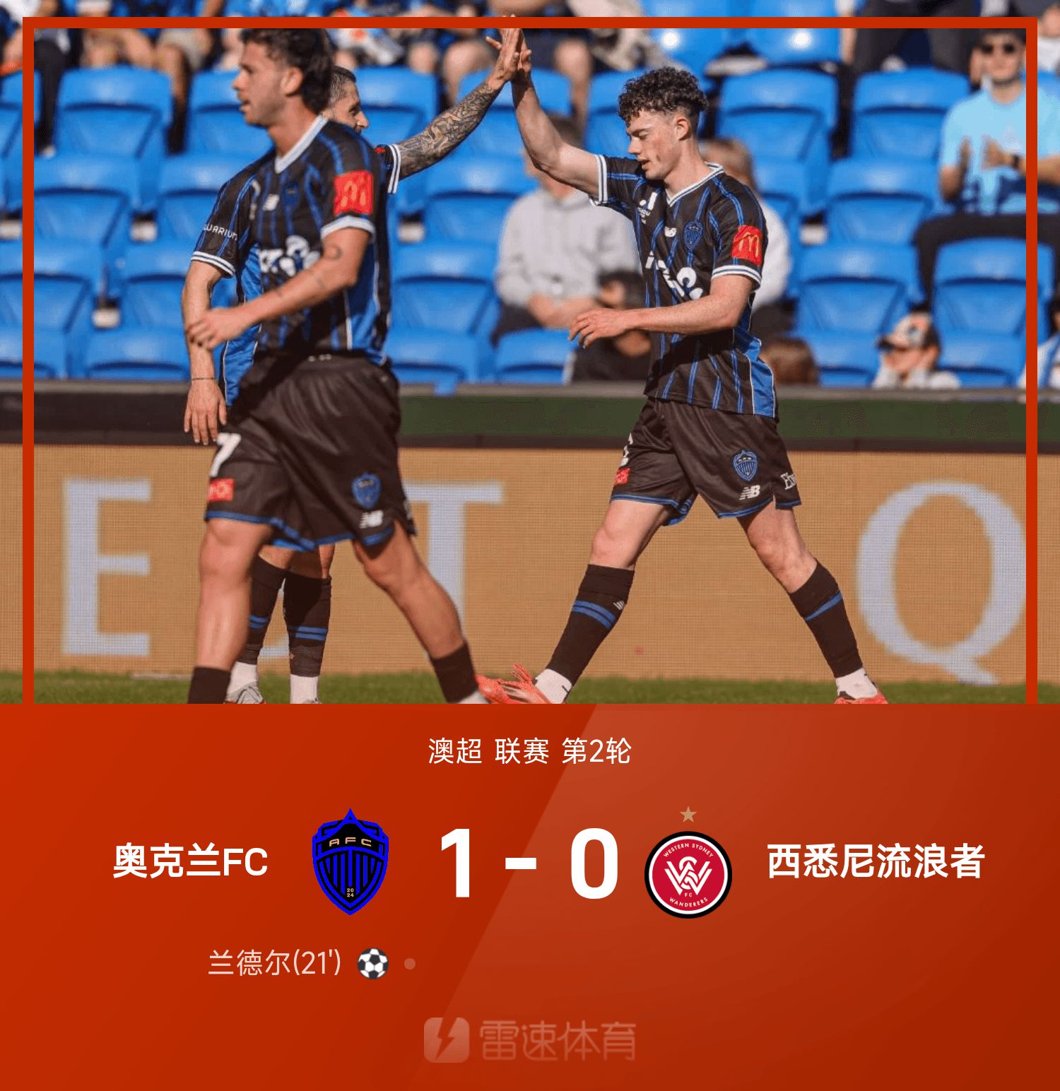 6686 Sports News on October 25 In the second round of the 25/26 A-League season, the Auckland FC home team defeated the Western Sydney Wanderers 1-0. In the first half of the game, Randall scored from the outside and helped Oakland City take the lead; in the second half of the game, neither side failed to score.