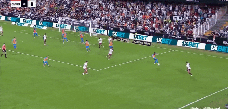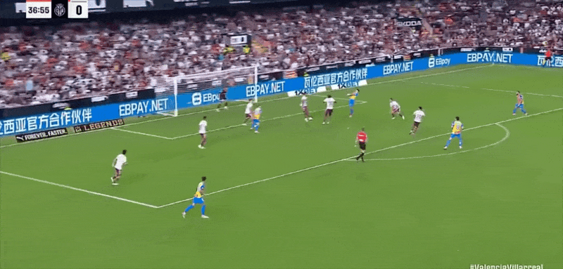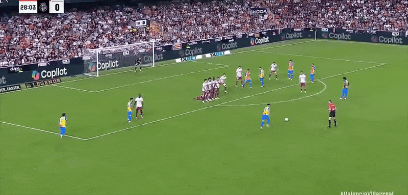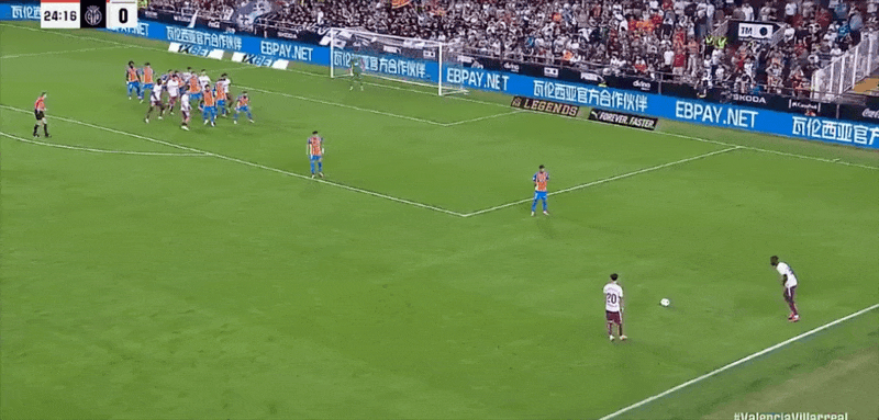 29’ Pepelu took a free kick directly in front of the three-second area, and the ball flew towards the stands