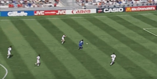 In the 37th minute, Morero took a side kick from the right. Dino Baggio jumped high and headed the ball towards the goal, but it was confiscated by the goalkeeper.