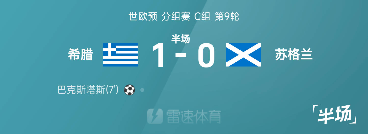 World European Preliminary Halftime: Baxtas scores, Pavlidis retires due to injury, Greece 1-0 Scotland