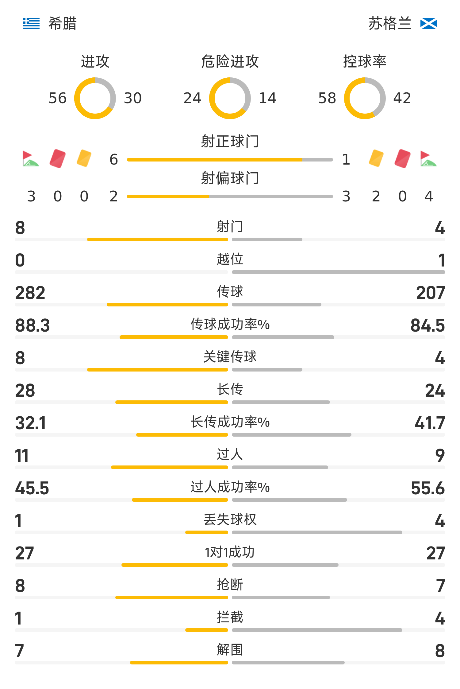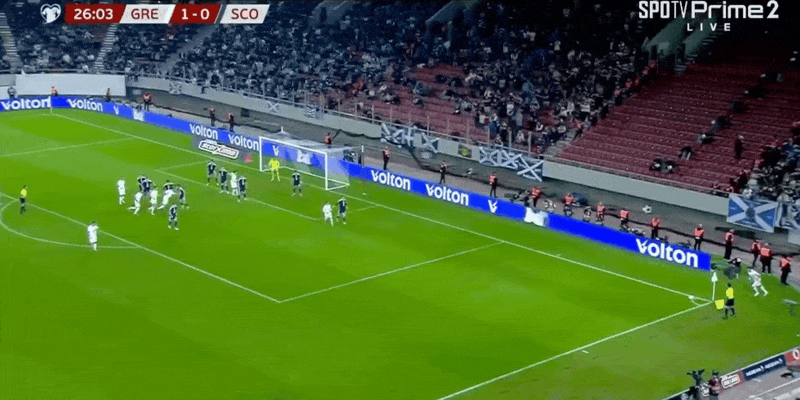 27' Greece took the ball from the front line, and Rezos shook his head and hit the goal but Gordon made a save