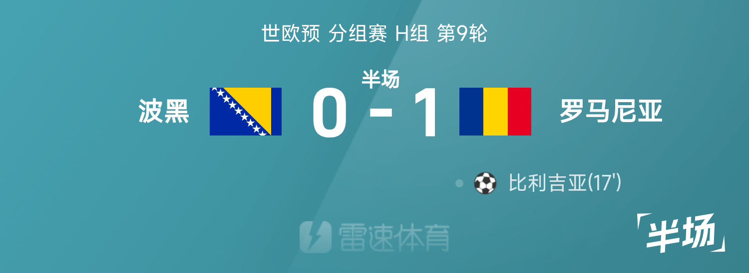 World Cup pre-half time: Bilighia scored, Romania temporarily 1-0 Bosnia and Herzegovina