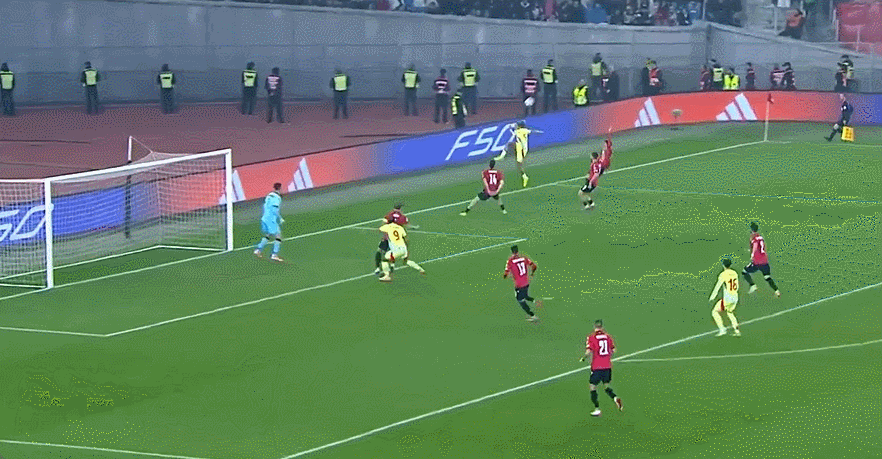 86' The Spanish defender blocked the shot and passed the penalty area and almost scored an own goal, and the ball hit the post and popped out