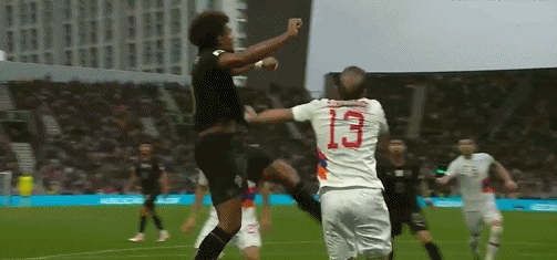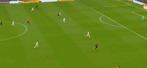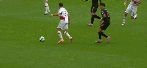 40’B’s volley in front of the goal was blocked by the defender and out of the end line
