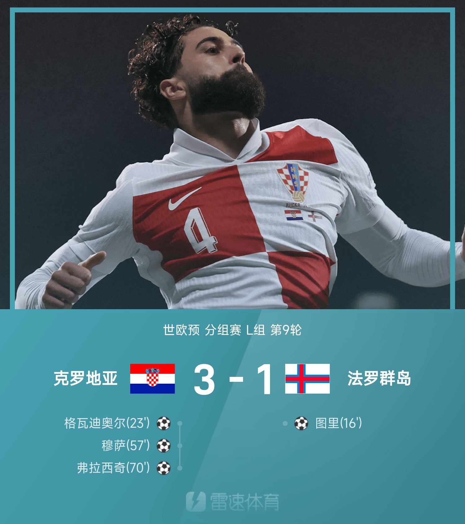 6686 Sports News on November 15th In the 9th round of Group L of the 26th World European Qualifiers, Croatia defeated the Faroe Islands 3-1. Throughout the game, Turi scored on a deflection to help the Faroe Islands away team take the lead. Then Gvadiol, Moussa, and Vlasic scored consecutively to complete the reversal. Modric was replaced in the 61st minute, and Croatia advanced to the World Cup.