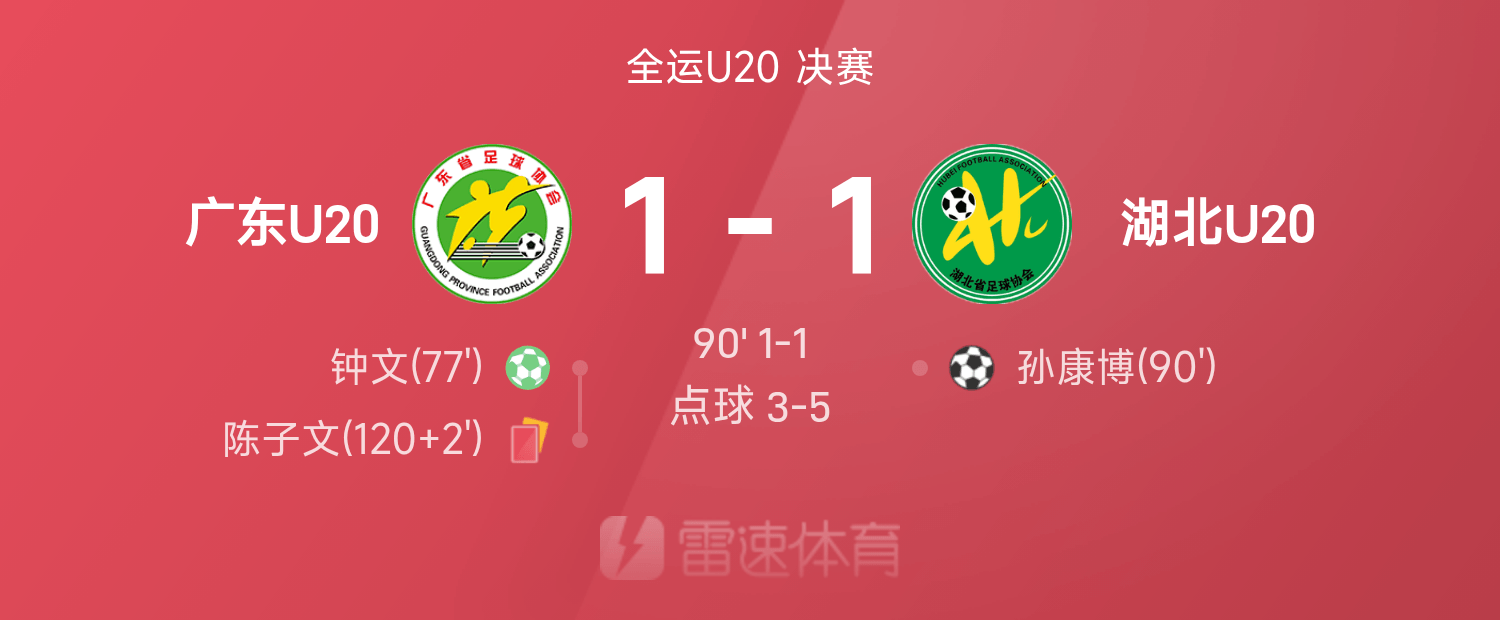 120' Twelve yards battle Hubei defeated Guangdong 5-3 and won the gold medal