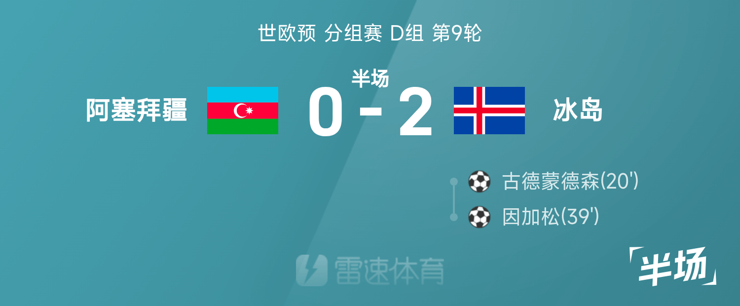 World Cup pre-half time: Gudmundsson and Ingasson scored, Iceland temporarily 2-0 Azerbaijan