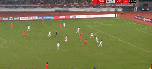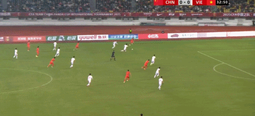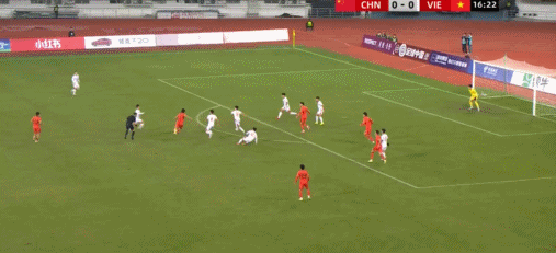 33’ The Chinese team sent a threatening pass from the left to the penalty area, and the outflanking player in front of the goal was a step slower