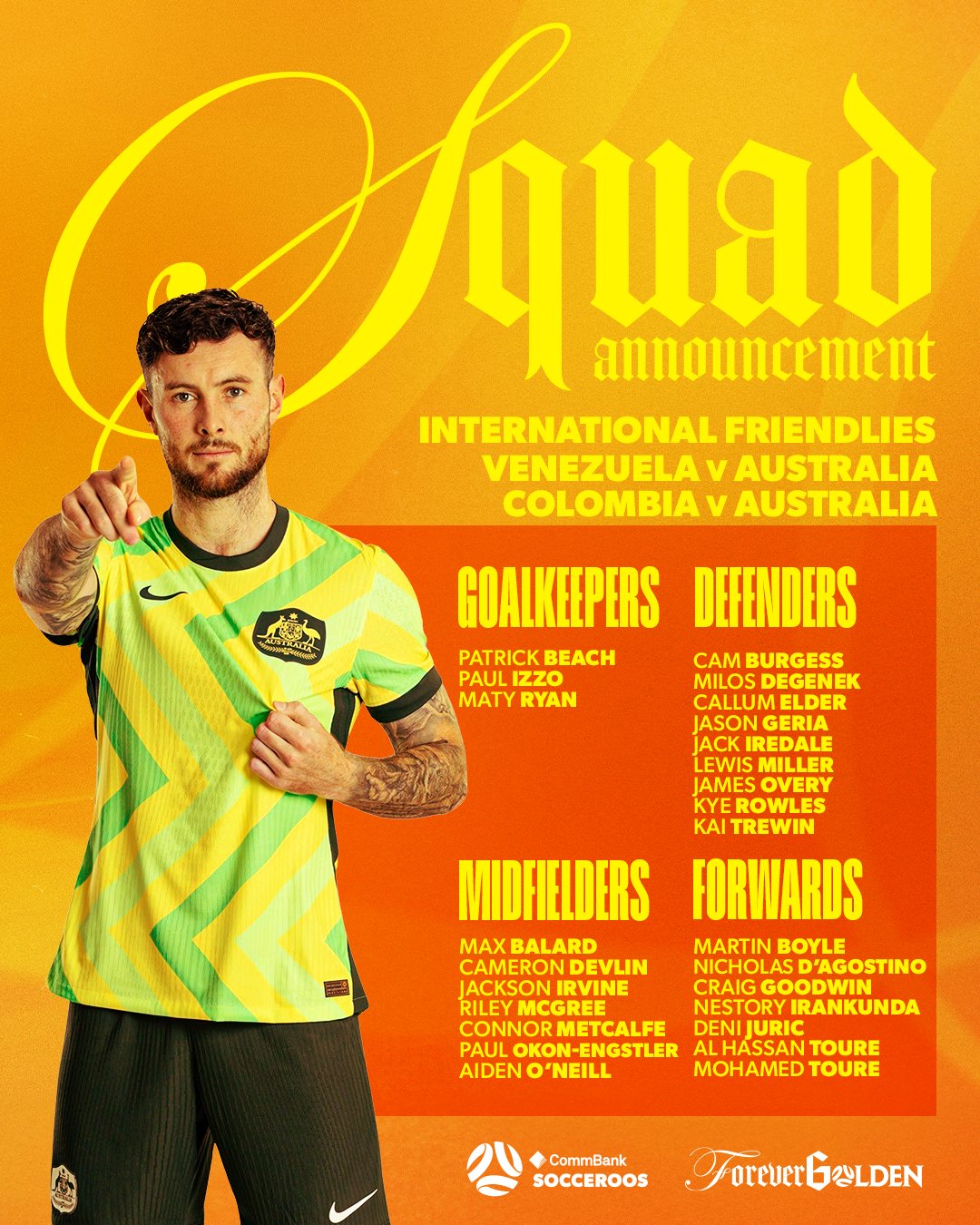 Australia announces November national team roster: Goodwin, Boyle, Owen are on the list