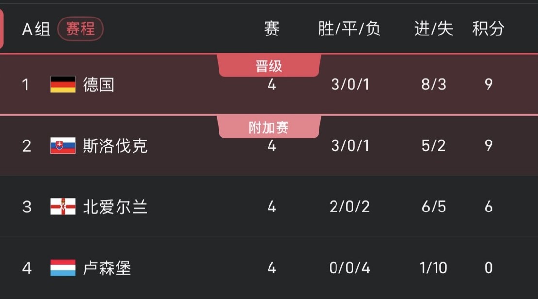 Germany and Slovakia share 9 points and they will have a direct conversation in the final round. Before that, the two teams still have to face Luxembourg and Northern Ireland respectively.