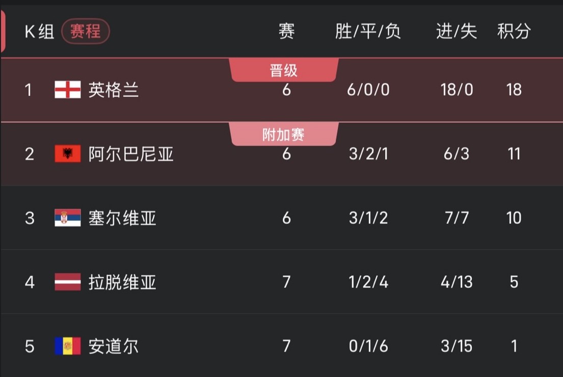 England has secured the top spot in the group in advance. Albania and Serbia will compete for second place in the group.