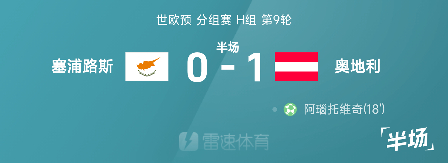 World European Preliminary Halftime: Arnautovic scored from the penalty spot, Austria 1-0 Cyprus