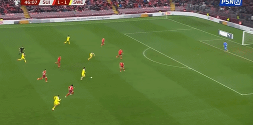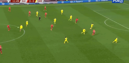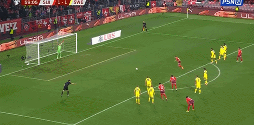 61' Embolo broke into the three-second zone after stealing the ball, but was blocked by the goalkeeper from the end line