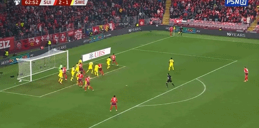 63’ is a hair’s breadth! The Swiss sideline kick was taken into the three-second zone, forming a continuous threatening offensive
