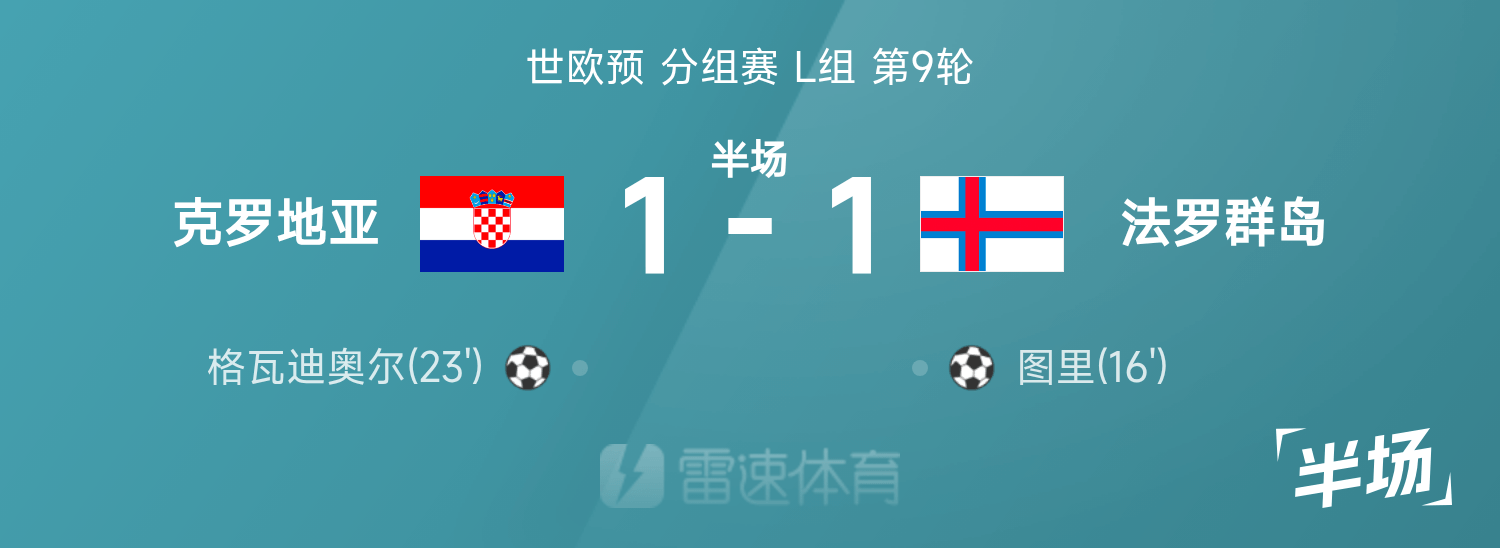 World European Preliminary Halftime: Turi scored, Gvadiol equalized, Croatia 1-1 Faroe Islands