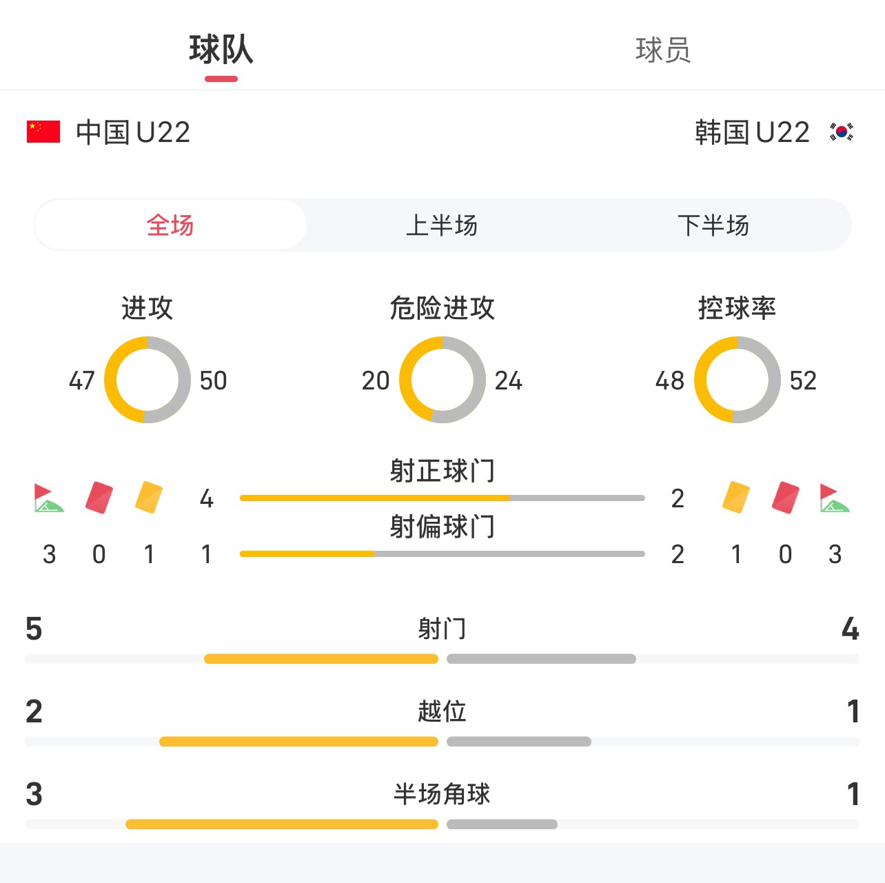U22 China vs. South Korea U22 full game statistics:
