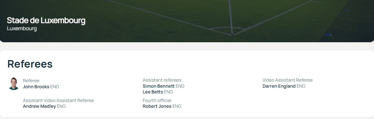 According to UEFA officials, this game will be officiated by a team of referees from the Premier League. The chief referee is John Brooks, and the video referee is Darren England.