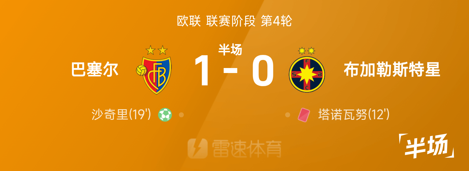 6686 Sports November 07 In the fourth round of the 25/26 Europa League, Basel faced Steaua Bucharest. After halftime, the score between the two sides was Basel 1-0 Steaua Bucharest, with Shaqiri scoring and Tanovanu red.