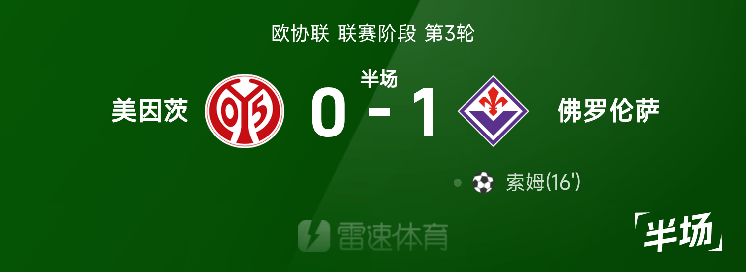 UEFA Halftime: Som scores, Mainz 0-1 Fiorentina