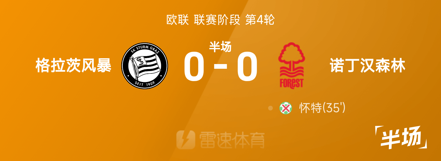 Europa League halftime: White missed a point, Malone's goal was disallowed, Graz Storm 0-0 Nottingham Forest