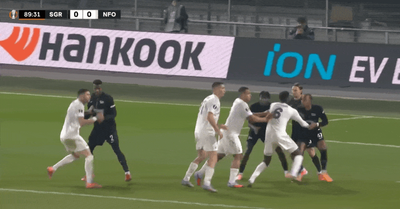 6' Kiteshvili fell to the ground after the ball was passed. The referee ruled that there was no violation. The former silently praised