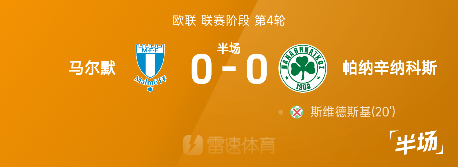 6686 Sports November 07 In the fourth round of the 25/26 Europa League, Malmo faced Panathinaikos. After halftime, the score between the two sides was Malmo 0-0 Panathinaikos, with Svidski missing a point.