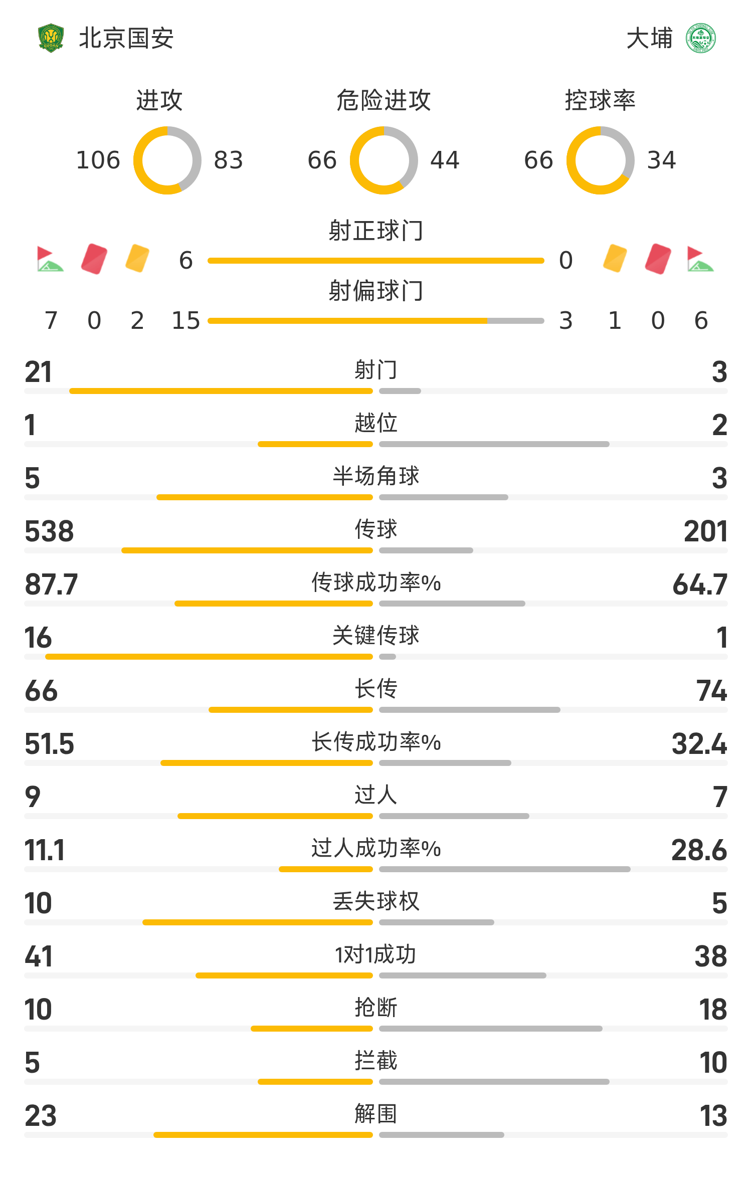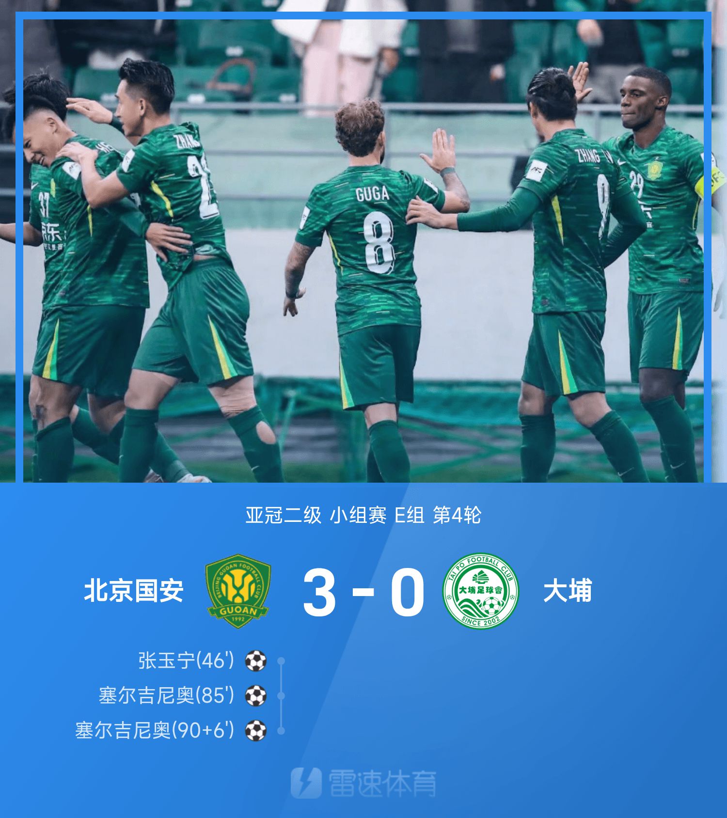 6686 Sports reported on November 6 that in the 4th round of Group E of the 25/26 AFC Champions League second-tier group match, Beijing Guoan defeated Dabu 3-0. In the first half, neither team made any achievements, and Guoan goalkeeper Zhang Jianzhi almost gave a gift; only one minute into the second half, Zhang Yuning broke the deadlock for Guoan, and then Serginho, who came on as a reserve player, scored twice, including a buzzer-beating goal. In the end, Beijing Guoan defeated Dabu 3-0 to win the AFC Champions League for the first time this season, and got rid of the bottom and moved to third place.