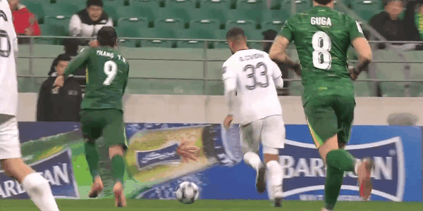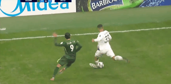 42’ Zhang Yuning was humiliated by his opponent dribbling under his crotch, Fabio pushed the opponent for his teammates