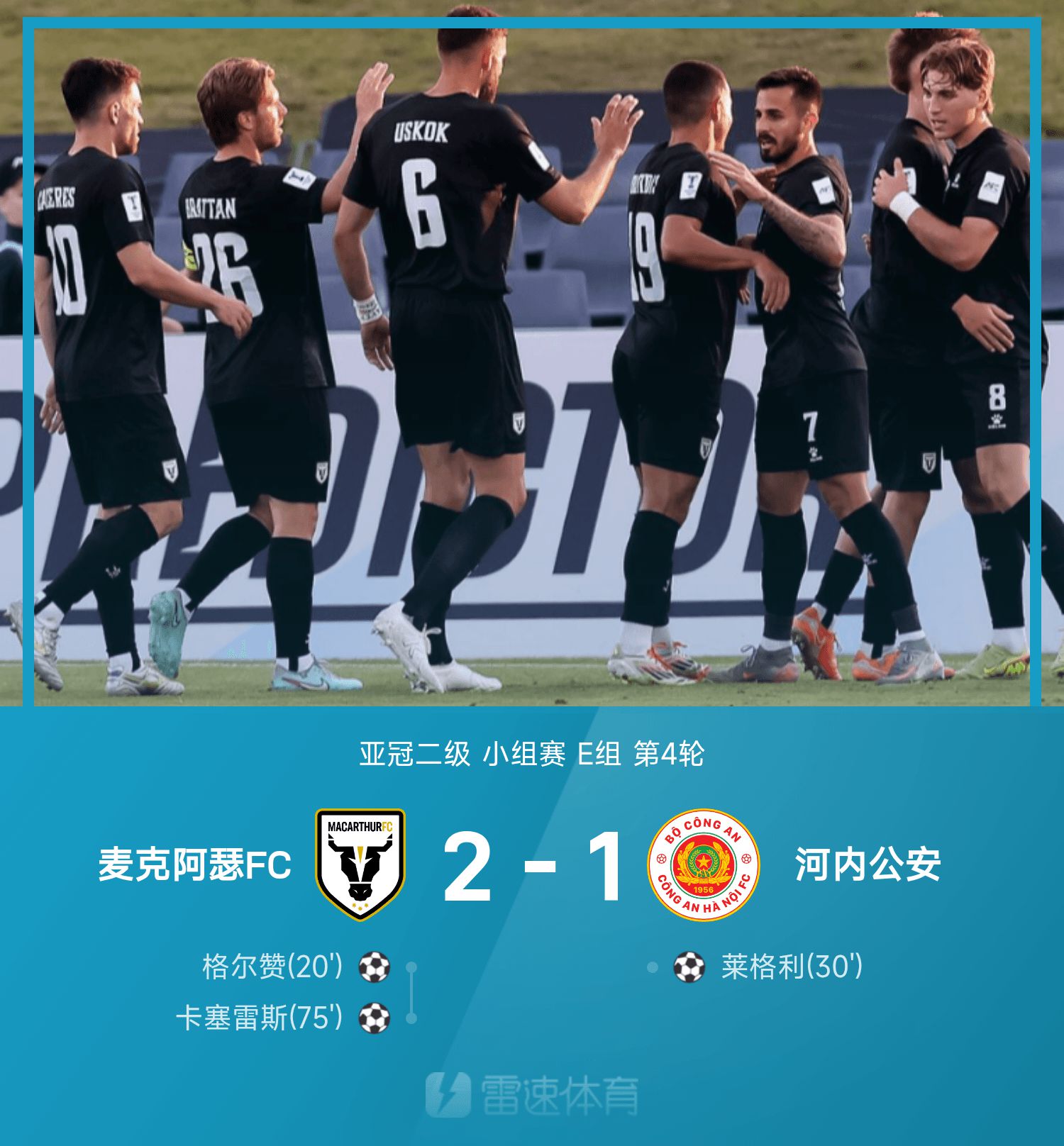 6686 Sports reported on November 6 that in the 4th round of Group E of the 25/26 AFC Champions League second division, the home team of Macarthur FC defeated Hanoi Public Security 2-1. In the first half of the game, Gerzan opened the scoring for MacArthur, Legli equalized, and the two sides tied 1-1; in the second half of the game, Caceres scored the winning goal. MacArthur leads the group with 7 points, while Hanoi still ranks second in the group with 5 points.
