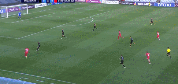 53' MacArthur took the free kick to the three-second zone to create a threat, and the 12-yarder was a step too late
